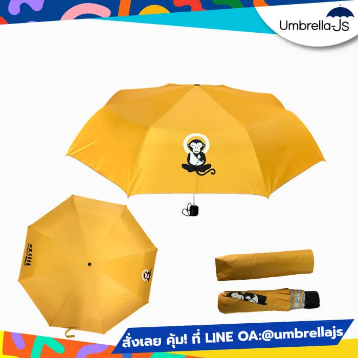 ร่มพับ 3 ตอน สกรีนโลโก้ Monky House สีเหลือง สดใส