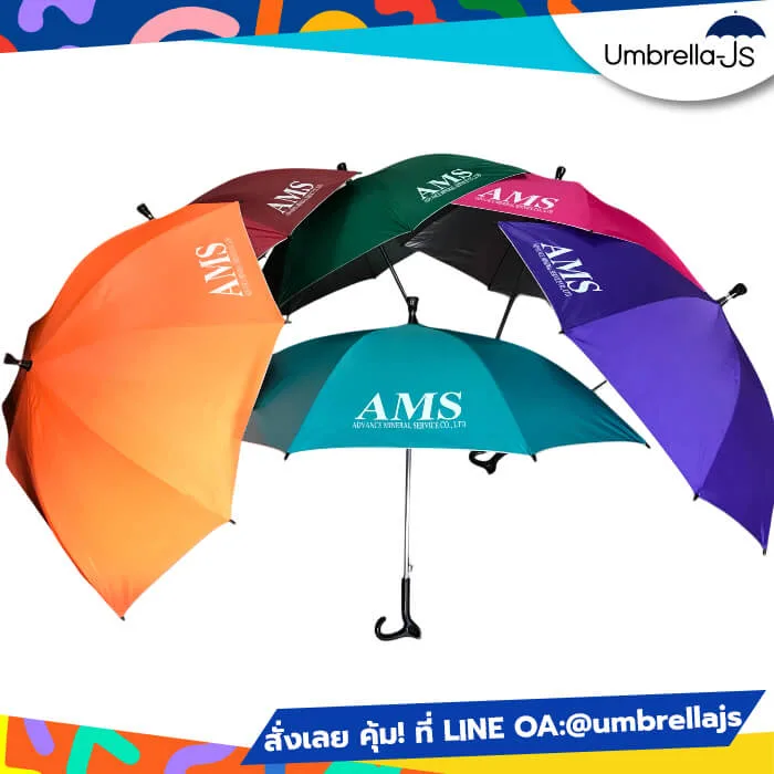 รหัส สินค้า: ร่มไม้เท้า สกรีนโลโก้ AMS