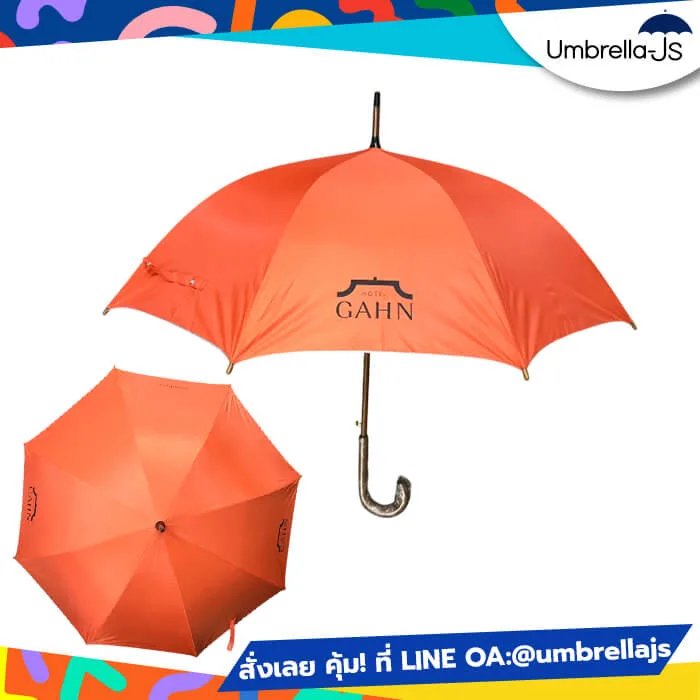 รหัส สินค้า: ร่มโครงไม้ สกรีนโลโก้ straight-umbrella-wood-frame-GAHN-hotel